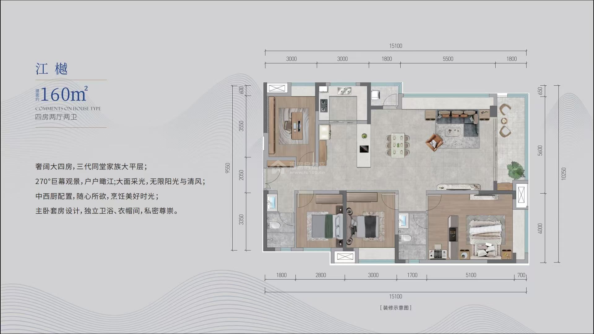 | 4室2厅 | 160.00m² | 西 | 毛坯 | 住宅 |2023年建 - 高层 - (共19层) - 3梯4户电梯 临江148 万单价9250元/m² -